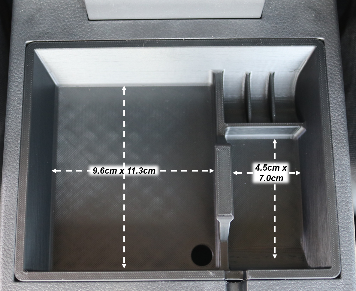Proudly made in Australia using cutting-edge 3D printing technology, our trays offer ample room for your belongings, ensuring they stay in place throughout your journey. Installation is effortless—simply slide the tray into the console for a snug, perfect fit, with no interior rubbing, allowing the lid to close smoothly.