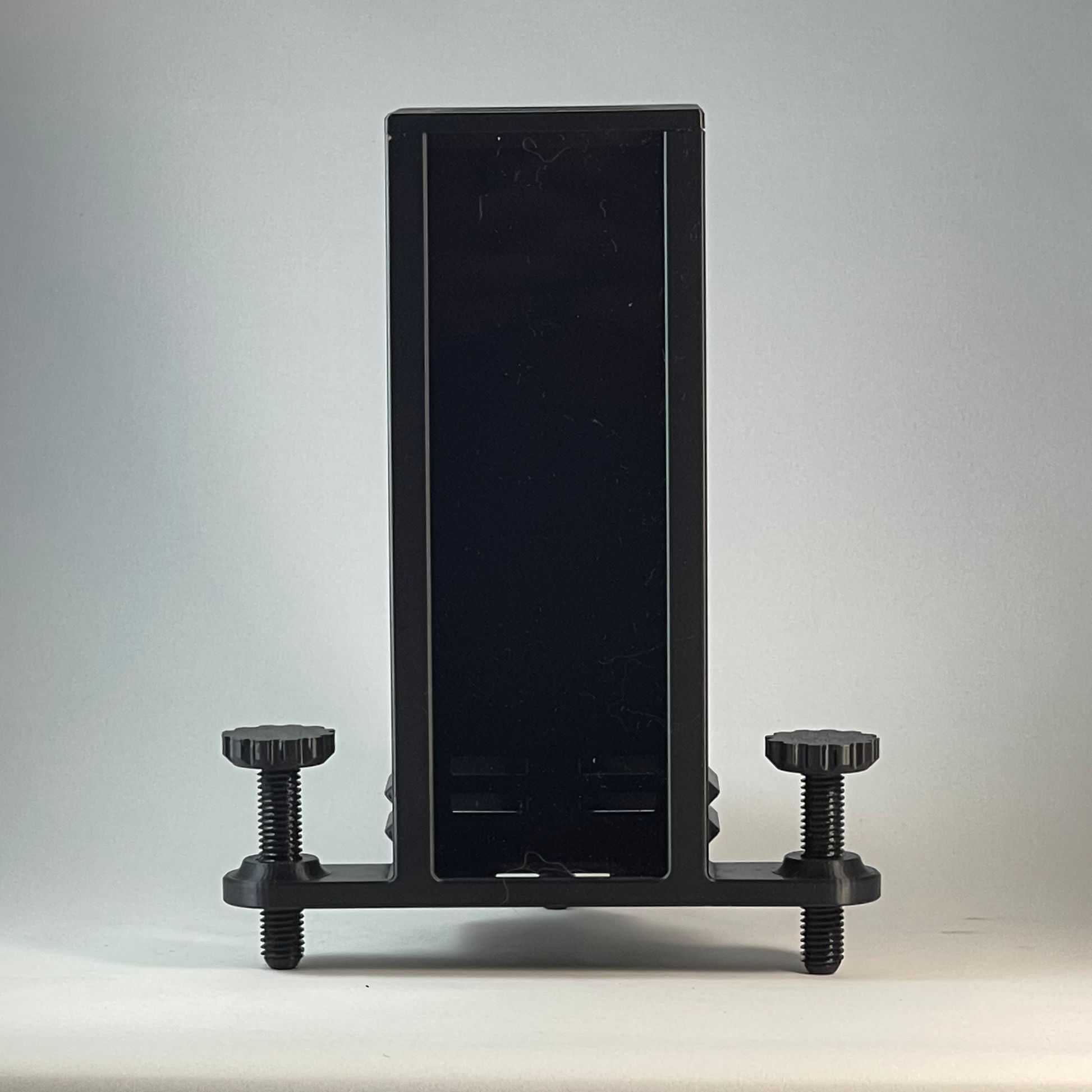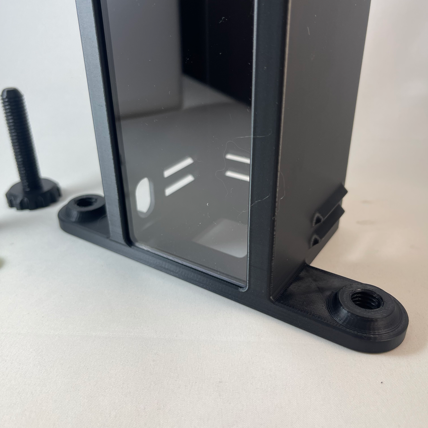 Included is a custom cut 3mm sheet of polycarbonate that slots into the alignment stand. The exterior walls of the 3D printed shell have been strengthened just in case too.